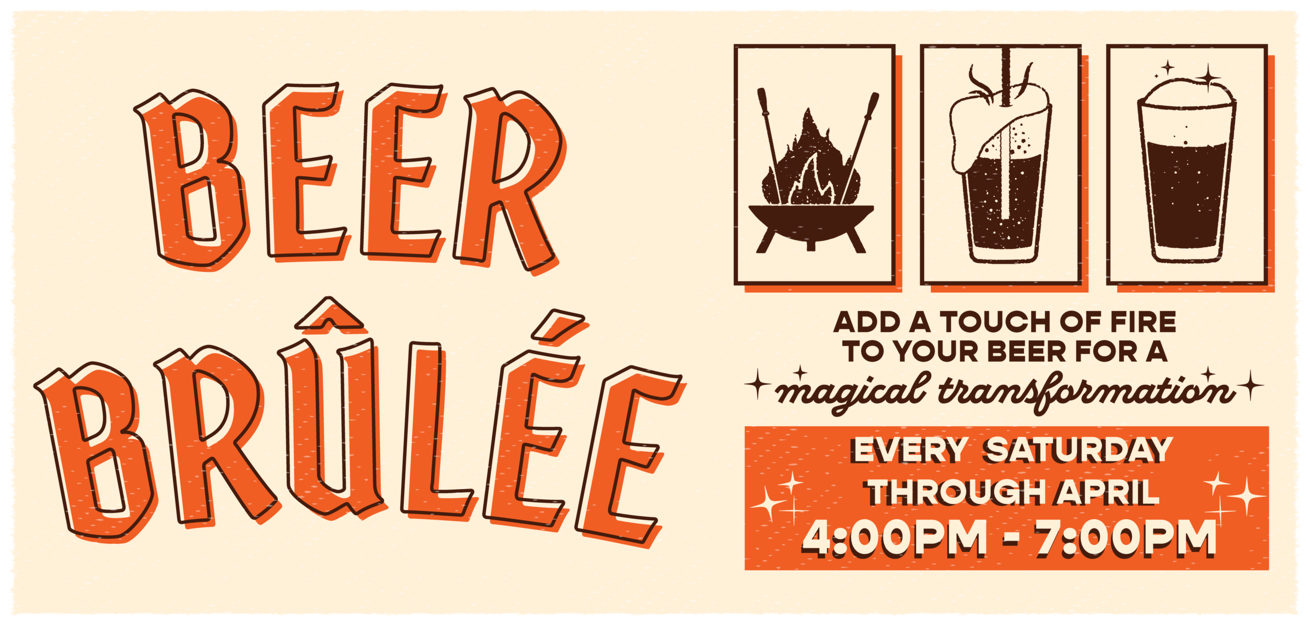 Like magic, but really it’s science. The flavor change that occurs in a Beer Brûlée is thanks to the Maillard reaction – think of that distinctive taste that comes from browning a food, like a roasted marshmallow or seared steak. The compounds formed during this chemical reaction are what make bread crust taste toasty and coffee dark and roasty.